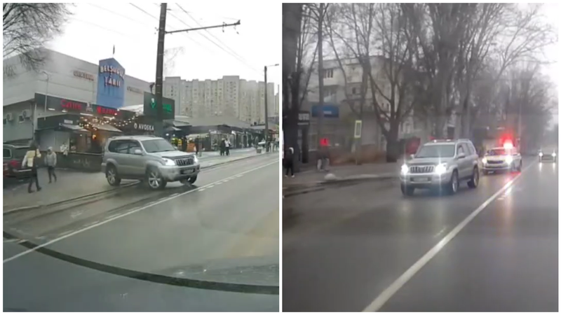 Exact în momentul respectiv, pe aceeași stradă se deplasa și o mașină de Poliție, iar oamenii legii au fixat încălcarea.