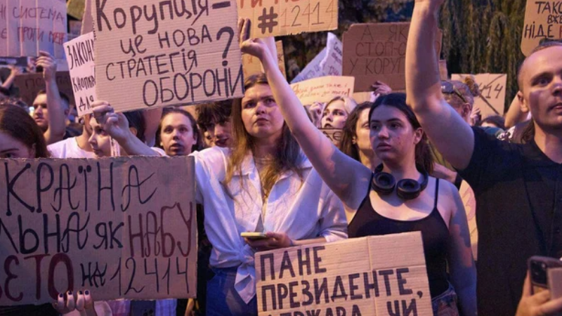 Declarația a fost făcută pe 23 iulie, la o zi după ce șeful statului a semnat o lege criticată intens, despre care societatea civilă și o parte a opoziției afirmă că subminează independența principalelor structuri anticorupție – Biroul Național Anticorupție (NABU) și Parchetul Specializat Anticorupție (SAPO).