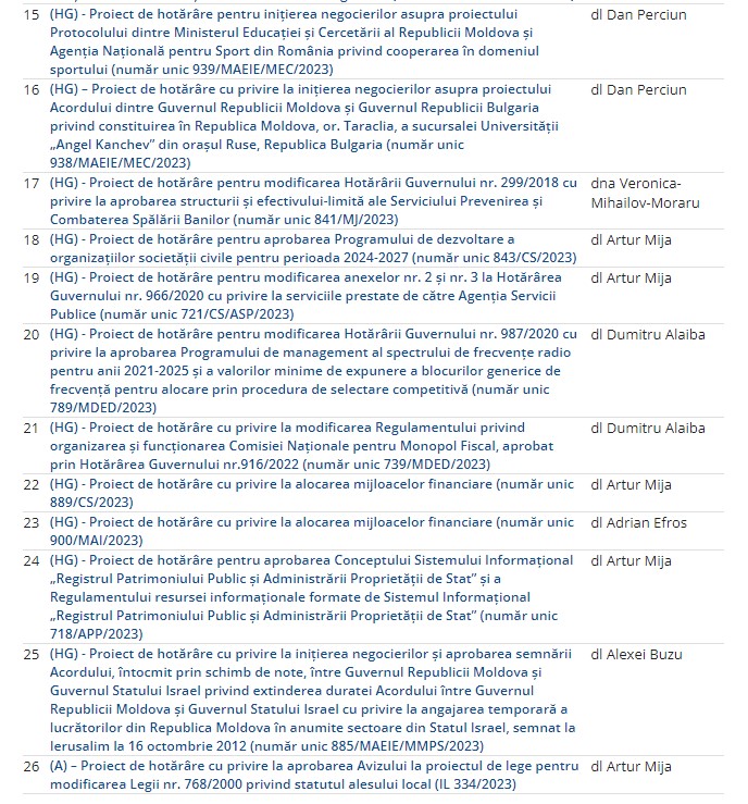 10:27 Proiectul de hotărâre pentru inițierea negocierilor asupra proiectului Protocolului dintre Ministerul Educației și Cercetării al Republicii Moldova și Agenția Națională pentru Sport din România privind cooperarea în domeniul sportului, aprobat de cabinetul de miniștri.