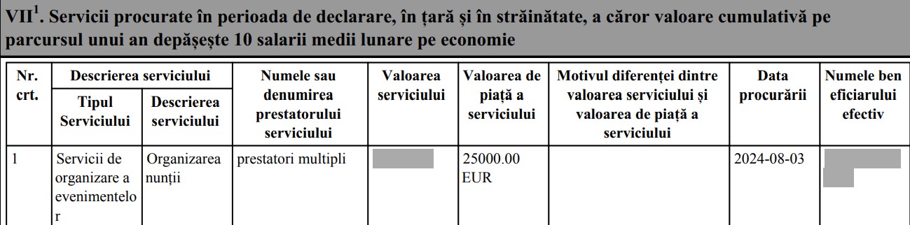 În declarația de avere și interese personale, depusă pe 9 august, Dumitru Alaiba a trecut suma de 25.000 de euro la rubrica „Servicii de organizare a evenimentelor”, indicând costul total al ceremoniei.