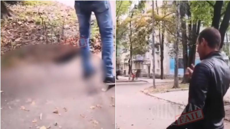Din imaginile publicate pe o rețea de socializare, bărbatul încearcă să se apropie și să ridice câinele însă nu este lăsat de vecini, enervați de actul comis de acesta.
