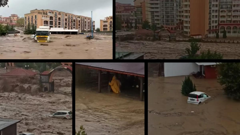 Mai multe imagini postate pe reţelele sociale arată cum staţiunea Elenite, situată după Sveti Vlas, a fost complet înghiţită de ape. Filmările arată cum nivelul apei a ajuns atât de ridicat încât a inundat mai bine de jumătate dintre clădiri și străzi. Apa se revarsă peste mașinile parcate, care plutesc efectiv în apă, iar străzile sunt complet sub ape.