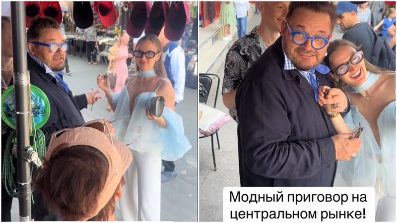 Imaginile postate pe rețele îl surprind de ex-prezentatorul emisiunii „Модный приговор” în Piața Centrală, stilistul Alexandr Vasiliev, alegând o pereche de ochelari pentru o tânără.