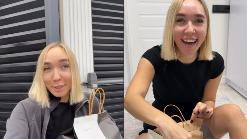 Bloggerița a fost surprinsă primind un pachet negru cu un bilețel pe care scria: „Scuze, nu am avut vază”.