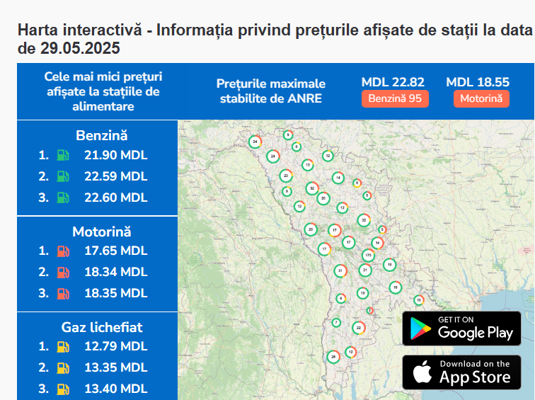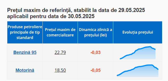 Prin urmare, pentru un litru de benzină șoferii vor achita 22,79 lei, iar pentru cel de motorină - 18,50 lei.