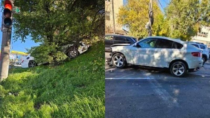 Nu au putut împărți o intersecție: Un Mercedes și un BMW s-au lovit violent, la Botanica. Unul dintre boliduri a zburat pe acostament