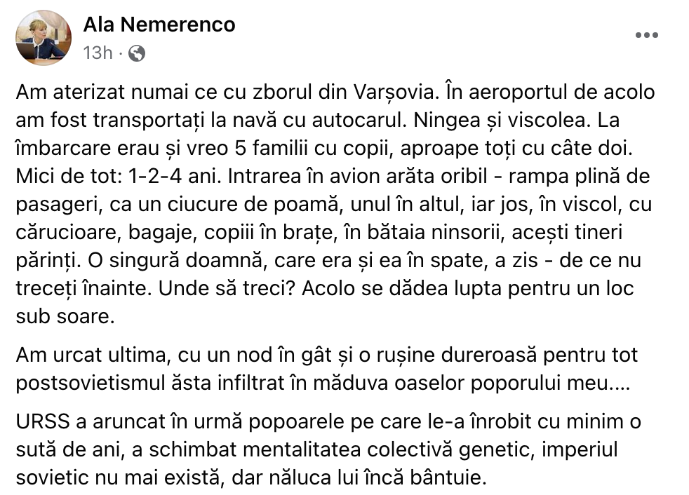 Am urcat ultima, cu un nod în gât și o rușine dureroasă pentru tot postsovietismul ăsta infiltrat în măduva oaselor poporului meu.…