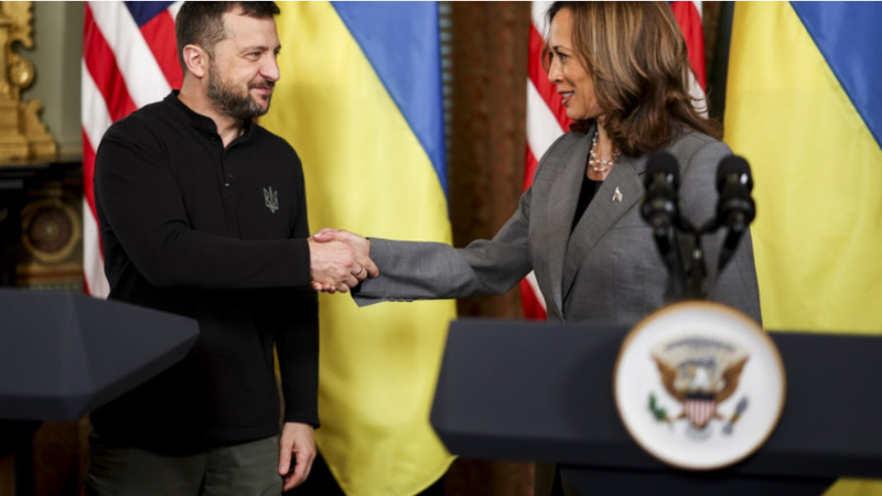 „Domnule președinte Zelenski mă bucur să vă revăd. Este a șaptea noastră întâlnire și bun venit înapoi la Washington D.C. Așa cum am spus și în cele șase întâlniri anterioare, sprijinul meu pentru Ucraina este același. Sunt alături de dumneavoastră, de Ucraina și voi lucra ca să mă asigur că Ucraina va câștiga acest război. Statele Unite trebuie să stea alături de partenerii și aliații noștri, trebuie să ne apărăm valorile democratice și să ținem piept agresorilor. Trebuie să susținem legile și normele internaționale. Fiecare dintre aceste principii sunt în pericol în Ucraina, de aceea lupta ucrainenilor contează pentru poporul american. Ucrainenii își apără plini de curaj casele, patria, libertatea lor și democrația în fața unui dictator brutal, iar poporul american știe foarte bine ce înseamnă libertate, ce înseamnă independență și cât de important este statul de drept. Aceste idealuri sunt la baza a ceea ce înseamnă să fim americani”, a afirmat Kamala Harris, într-o conferință de presă susținută la Casa Albă împreună cu președintele ucrainean Volodimir Zelenski.