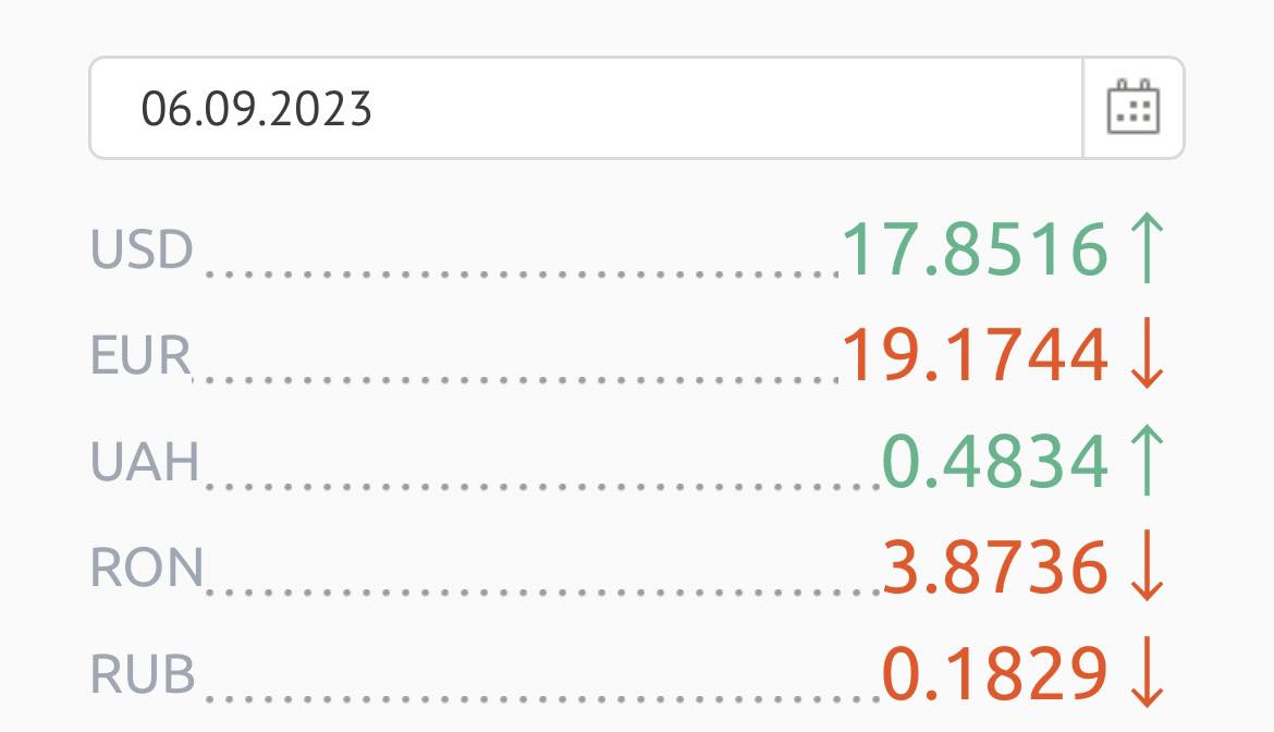 Banca Națională a Moldovei a stabilit astăzi, 6 septembrie, pentru euro un curs valutar de 19 lei și 17 bani, iar un dolar costă 17, 85 lei.