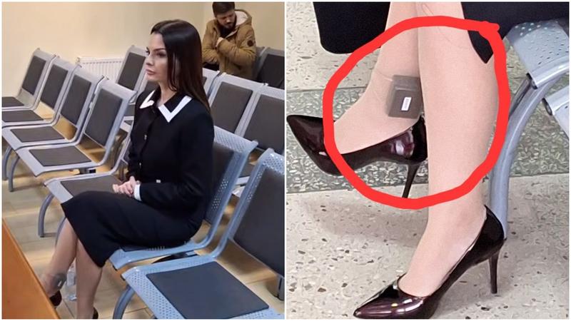 Pe piciorul bașcanei, îmbrăcată într-o rochie neagră, se poate observa ușor brățara electronică de monitorizare la picior, pe care aceasta nu o ascunde.