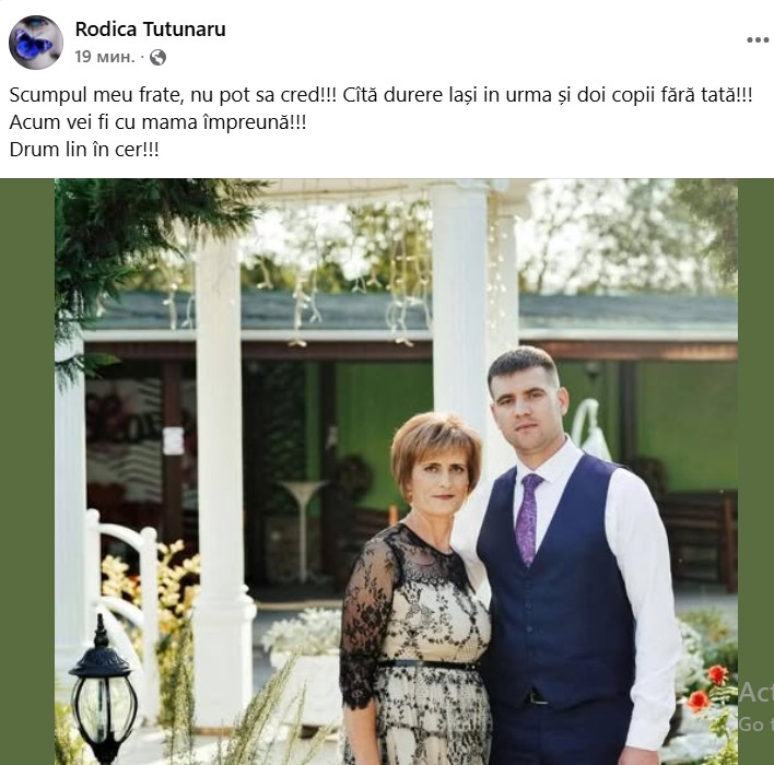 „Scumpul meu frate, nu pot să cred!!! Câtă durere lași în urmă și doi copii fără tată!!! Acum vei fi cu mama împreună!!! Drum lin în cer!!!”, a scris sora tânărului.