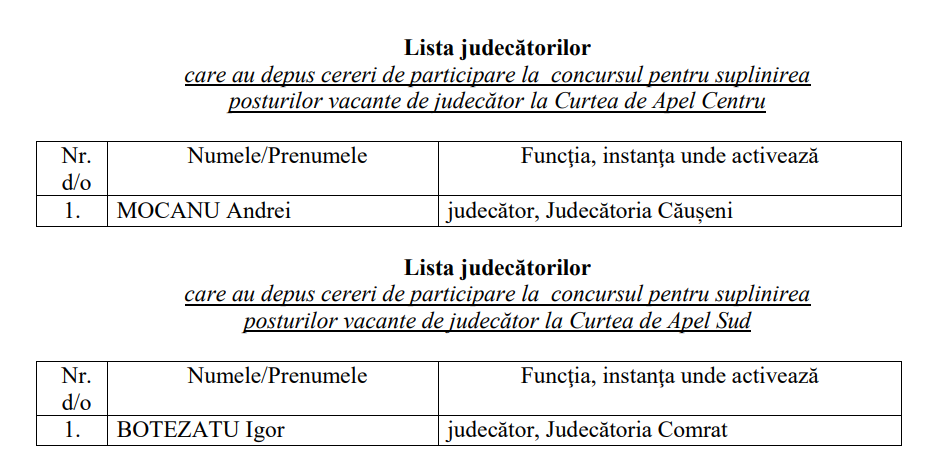 update A avut loc desfășurarea concursului pentru suplinirea, prin transfer temporar, a unor posturi vacante de judecător la Curtea de Apel Centru.