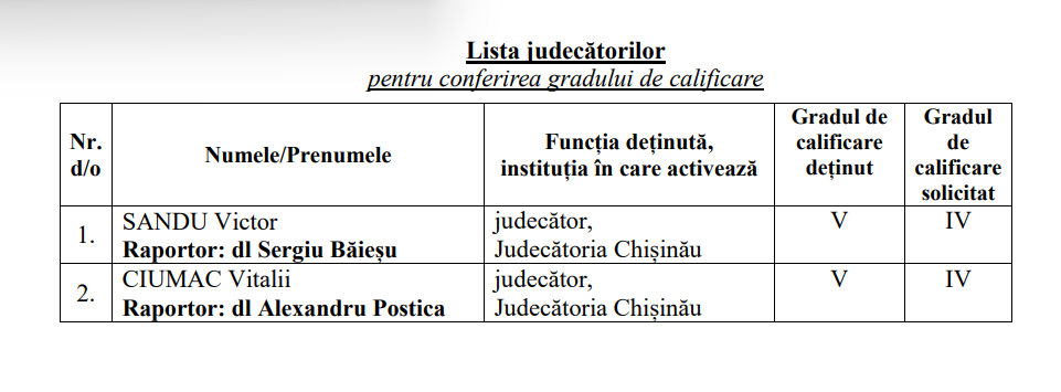 update În urma deliberărilor, s-au respins cererile de propunere repetată de numire în funcție de judecător a următorilor candidați: