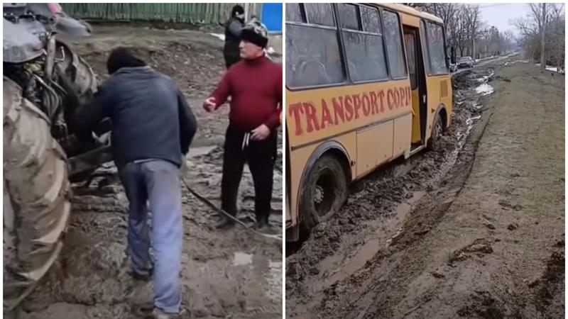 Un autobuz care transporta elevii la școală a rămas blocat în noroi, în Satul Acui, raionul Cantemir. Pentru deblocarea vehiculului a fost necesară intervenția unui tractor.