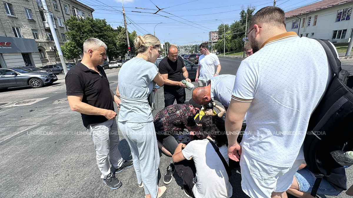 Accidentul s-a produs chiar în intersecție. Două motociclete s-au lovit violent, iar unul dintre bikeri a fost asistat de martorii din preajmă, care i-au oferit primul ajutor, până la venirea ambulanței.