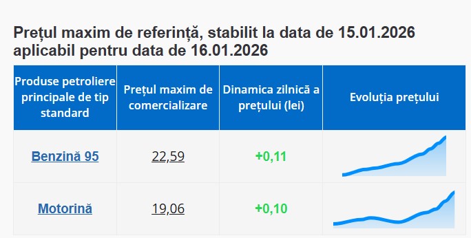 Benzină se scumpește mâine cu 11 bani la 22,59 lei/l, motorină la 19,06 lei/l conform ANRE