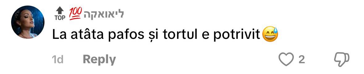 „Acesta-i tort, două piceni”, „La atâta pafos și tortul e potrivit”, „E o bucată de cușma lui guguță de la port mall?”, au comentat oamenii pe rețelele de socializare.