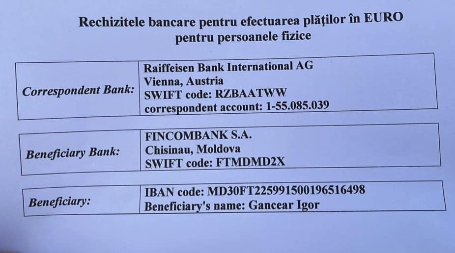 Card bancar 4326170012598561 - IGOR GANCEAR”, se arată în mesajul postat pe rețele.