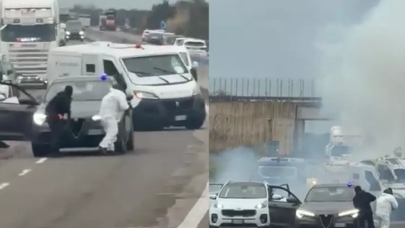 La urmărirea acestora a luat parte și un echipaj de carabinieri din Cellino San Marco, al cărui vehicul a fost lovit de trei focuri de armă.
