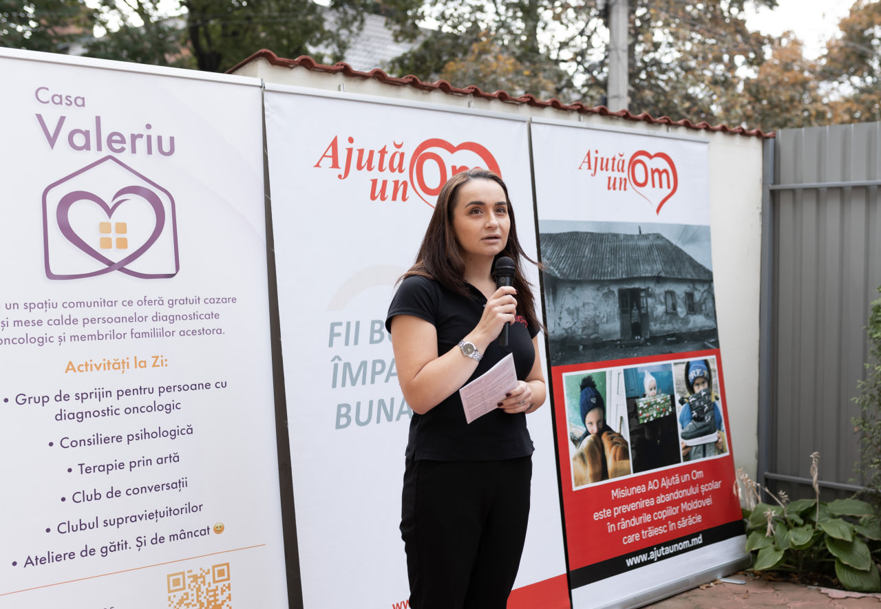 „Dacă nu aș fi mers alături de tatăl meu pe acest drum, numit cancer, probabil astăzi „Casa Valeriu” nu ar fi existat. Dar am mers și am trăit tot chinul, toată zbuciumarea și toată supărarea că nu putem schimba direcția bolii, nici măcar nu ne putem supăra pe moarte. A trebuit să moară tatăl meu, omul meu de suflet, ca astăzi să apară acest centru”, a declarat Doina Cernavca, directoarea executivă a asociației „Ajută un Om”.