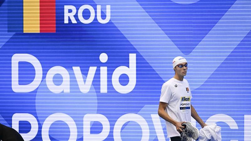 David Popovici, de 18 ani, a luat startul de pe culoarul doi şi după prima lungime de bazin a întors al treilea, dar pe ultimii 50 de metri nu a reuşit să accelereze şi în final s-a clasat doar al şaselea (47sec83/100). Popovici a pierdut la Fukuoka ambele titluri mondiale cucerite cu un an înainte la Budapesta (100 şi 200 m liber). El deţine recordul mondial la 100 m liber cu 46sec86/100, timp stabilit cu un an în urmă la CE de la Roma.