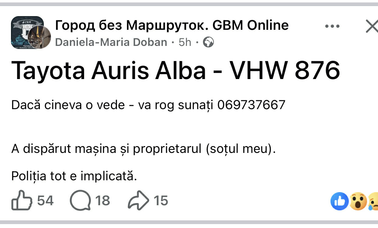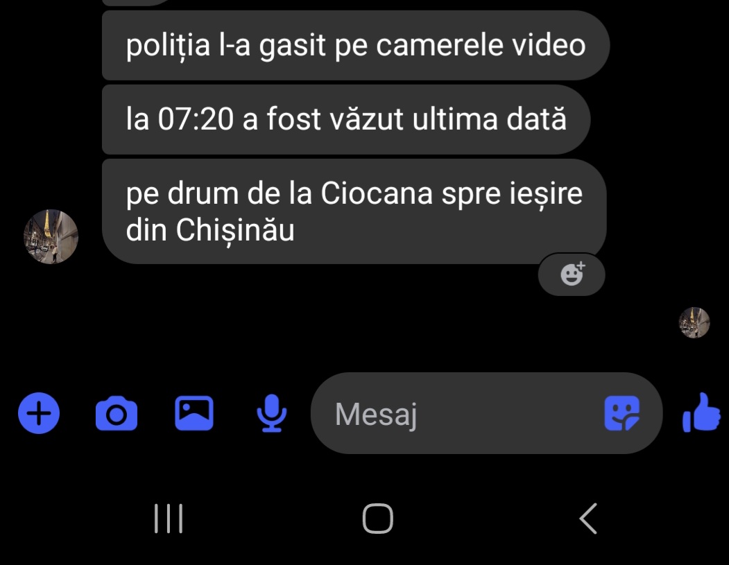 Ulterior, soția bărbatului a scris că acesta a fost observat la ora 07:20 pe camere de supraveghere în sectorul Ciocana, la ieșire din Chișinău.