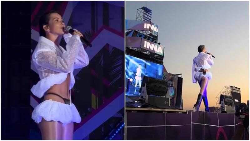 Inna a fost artista care a făcut spectacol într-o ținută provocatoare, stârnind o adevărată reacție la Beach Please! Cântăreața constănțeancă a captat atenția prin apariția sa mai degrabă lipsită de haine decât îmbrăcată, aducând un plus de energie și atmosferă incendiară evenimentului.Conform imaginilor postate pe Instagram de GlobalRecords, Inna și-a pus în evidență formele accentuând o apariție curajoasă cu… chiloții la vedere. Artista a optat pentru o ținută albă, dar și cu un element negru, ce a atras atenția, chiloții acesteia.