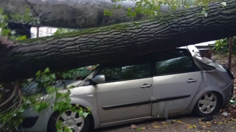 Un incident neobișnuit s-a produs pe strada Dumitru Rîșcanu din capitală. Un plop de mari dimensiuni s-a prăbușit peste un automobil parcat.