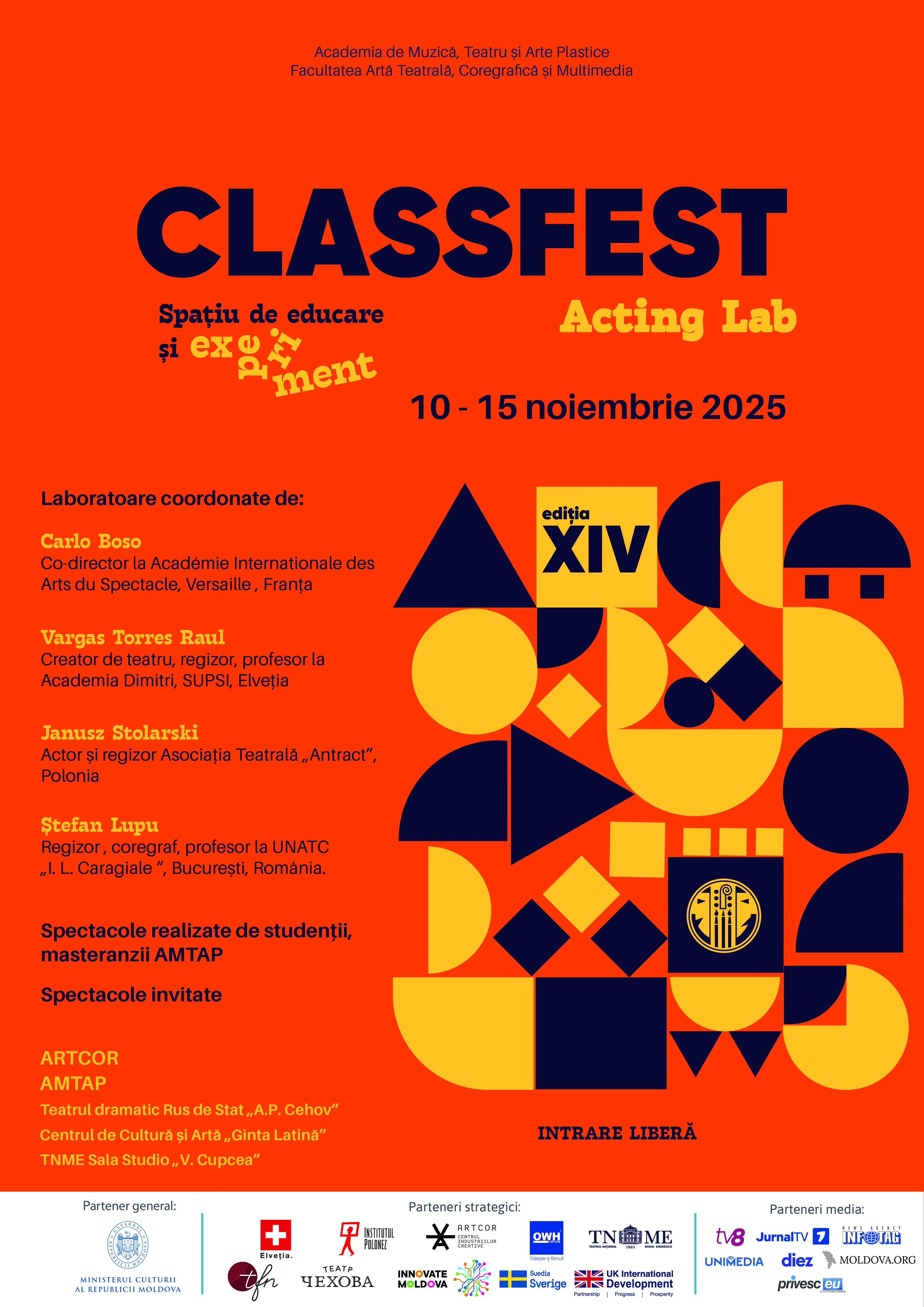 Astfel, în perioada 10.11-15.11.25 la Chișinău, va avea loc ClassFest Acting Lab - o extensie a Festivalului Internațional al Școlilor de Teatru și Film care pune accent pe procesul de învățare și creație artistică. Motto-ul acestui proiect este CLASSFEST – spațiu de educație teatrală și experiment.