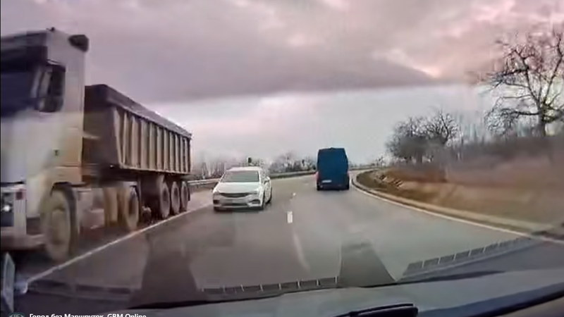 În imagini se vede cum șoferul automobilului face deplasarea ieșind pe contrasens.