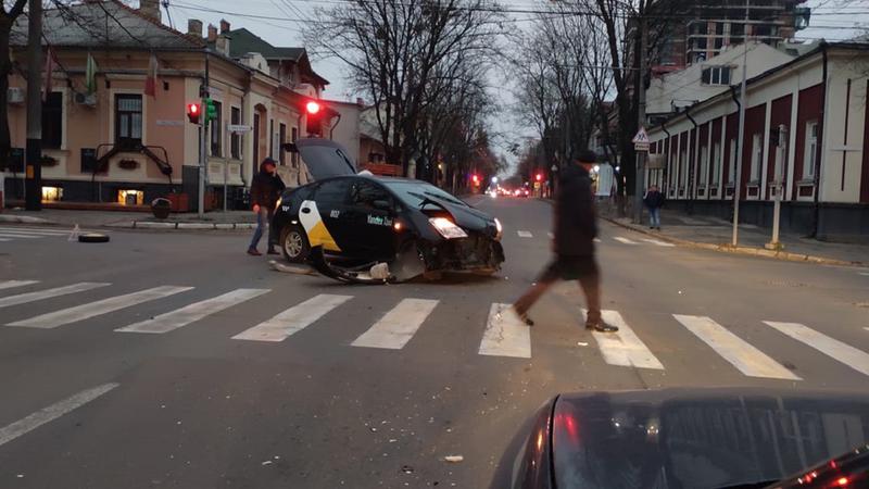 (știre inițală) O mașină ce aparține unei companii de taxi a fost avariat grav în această dimineață, pe o stradă din centrul capitalei. Potrivit martorilor, care au publicat și poze de la locul accidentului, a fost nevoie și de intervenția medicilor.