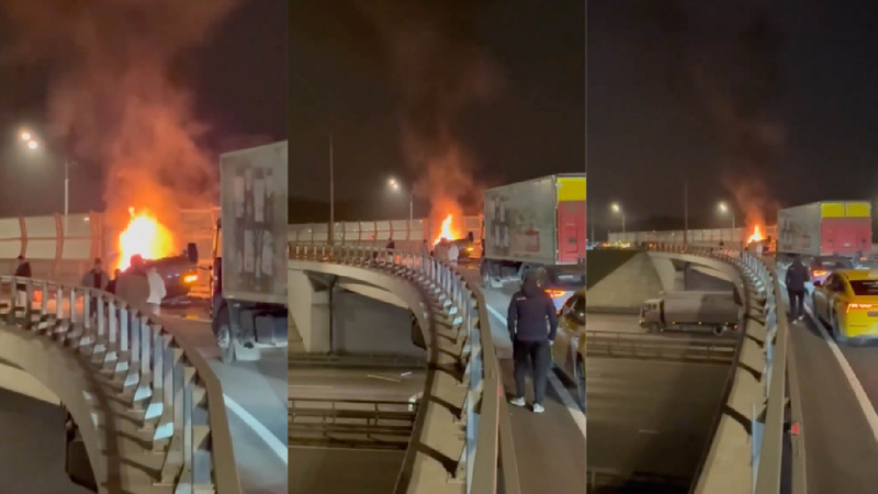 Imaginile de la fața locului arată vehiculul răsturnat pe capotă și cuprins de flăcări, cu teancuri de bancnote de ruble rusești împrăștiate pe șosea.