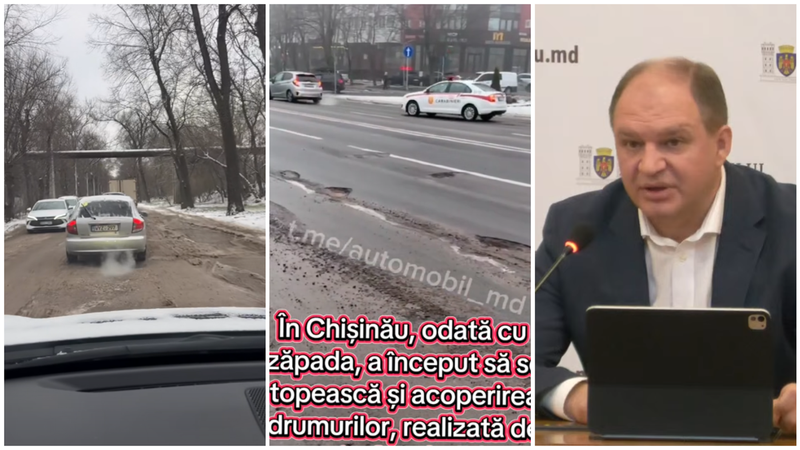 „Despre gropile apărute în ultima perioadă, pe anumite porțiuni de drum - imediat cum ne va permite timpul, deja am stabilit că masiv și la scară largă se va interveni pe toate aceste porțiuni de drum. Noi le cunoaștem, deoarece toate sunt evaluate și sunt luate la evidență. Am avut o situație similară practic în fiecare an când condițiile climatice erau mai dificile și am intervenit laq fel, imediat cum ne-a permis timpul. Alta este că temperaturile în acest an și aversele au durat continuu, iată că avem practic o lună și o asemenea situație e atestată pe toate drumurile - cele locale, dar și cele naționale. Cunoaștem situația la zi, am avut și discuții în acest sens cu specialiștii, temperaturi de acest gen nu am avut practic ultimii 5-6 ani, ca să nu zic chiar mai mult, între 0 grade și -1, -2 grad Celsius, când îngheață, se dezgheață, materialele antiderapante acționează asupra acoperișului asfaltic sau în urma trecerii cu unitățile de tehnică, tractoarele care strâng zăpada și în consecință, avem situația pe anumite străzi din mun. Chișinău”, a menționat primarul general.