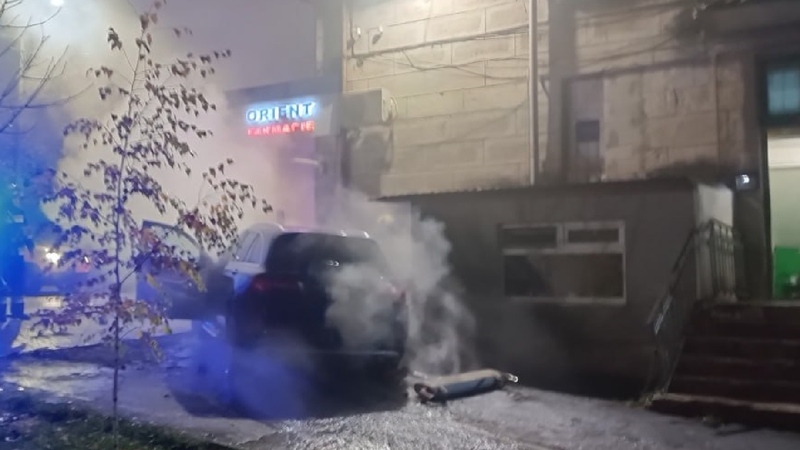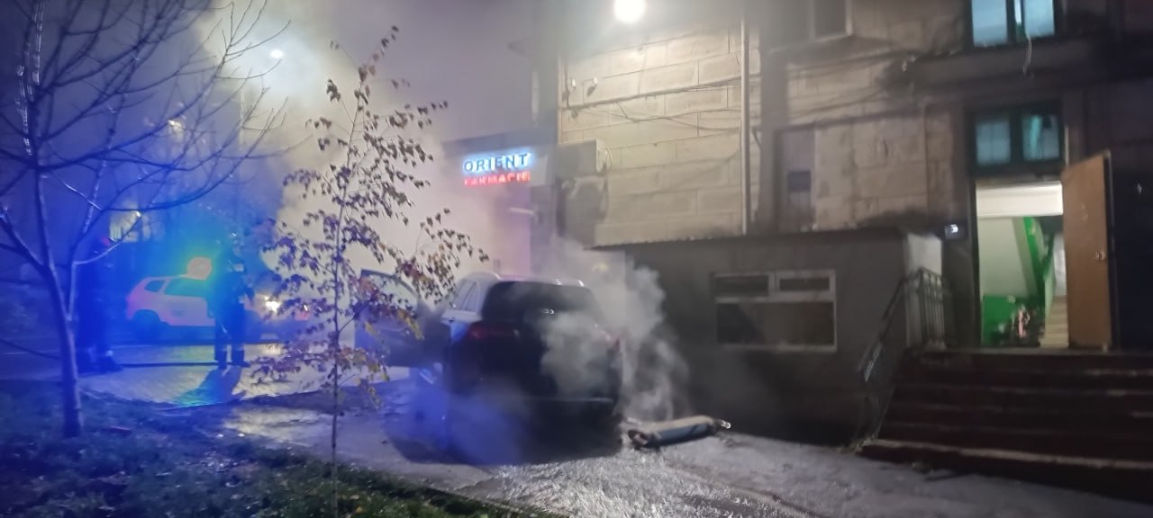 (video/foto) Accident teribil în capitală: Un Mercedes a luat foc, după ce un tânăr a pierdut controlul volanului și a intrat cu bolidul într-un bloc. Șoferul, la spital