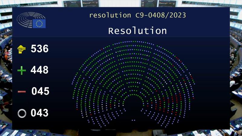 „Rezoluția a fost votată cu largă majoritate: 448 de voturi „pentru”, 45 „împotrivă” și 43 de abțineri.
