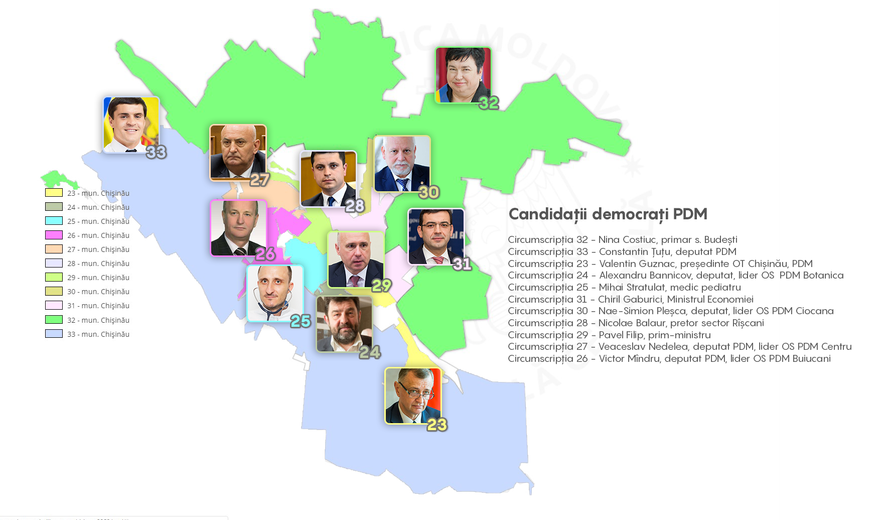 Mai departe pe scenă stau secretarul general al PDM, Constantin Botnari și deputata Valentina Stratan. Cei doi sunt mult mai activi prin teritoriu și este greu de crezut că vor candida pe vreo circumscripție din Chișinău.