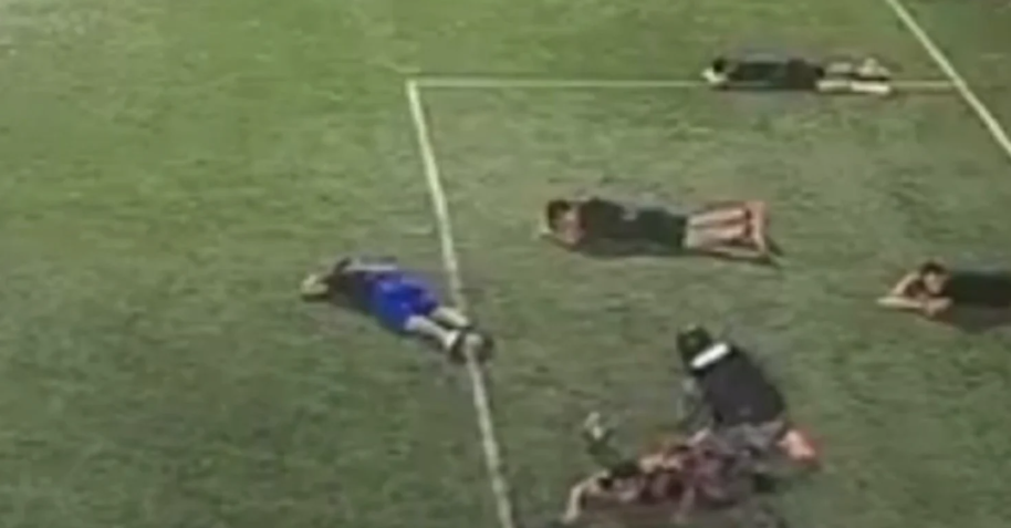 Tot momentul a fost surprins de camerele de supraveghere ale terenului. Când i-au văzut pe atacatori, jucătorii ambelor echipe s-au speriat, au ridicat mâinile și s-au aruncat la pământ. Agresorii au mers direct la persoanele pe care le aveau în vizor, le-au recunoscut imediat și le-au executat fără milă. După atac, cei trei au fugit rapid de la fața locului. La scurt timp, și ceilalți jucători au fugit pentru a-și salva viața.