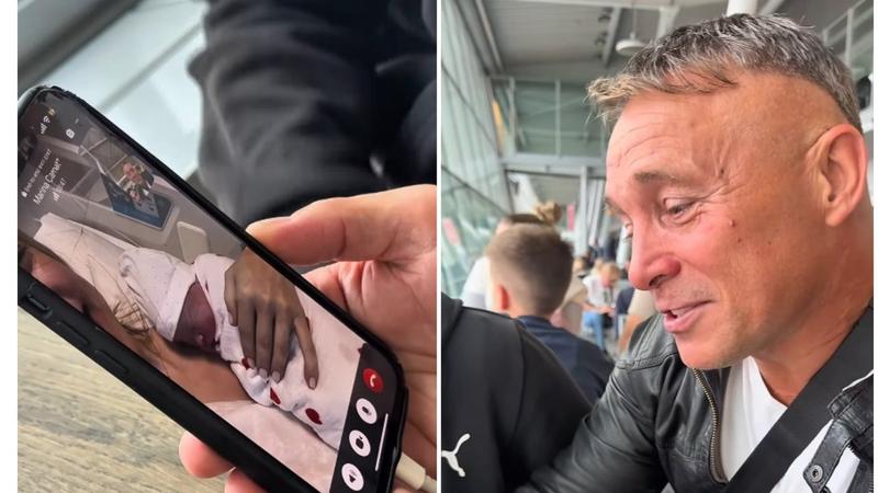„Mi-au dat lacrimile. Ai născut al treilea copil fără mine, mami, cât se poate”, a spus bărbatul emoționat, când a fost telefonat de soție printr-un apel video.