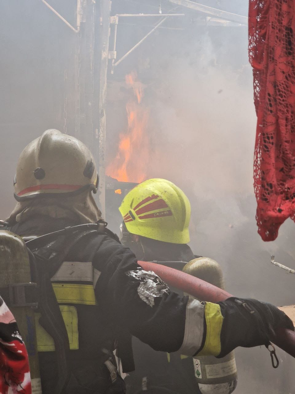 (foto) Peste 20 de buticuri cu haine, curprinse de flăcări în incendiul de la Bălți: Șapte echipaje de pompieri luptă cu focul