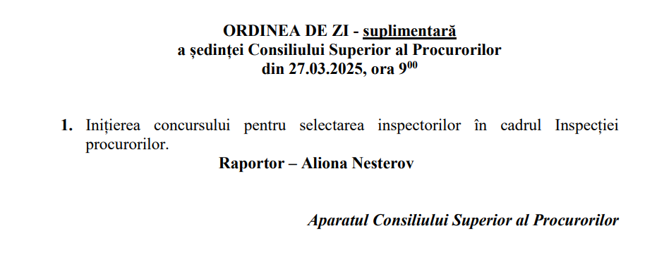 9:26 Plenul CSP a inițiat concursului pentru selectarea inspectorilor în cadrul Inspecției procurorilor.
