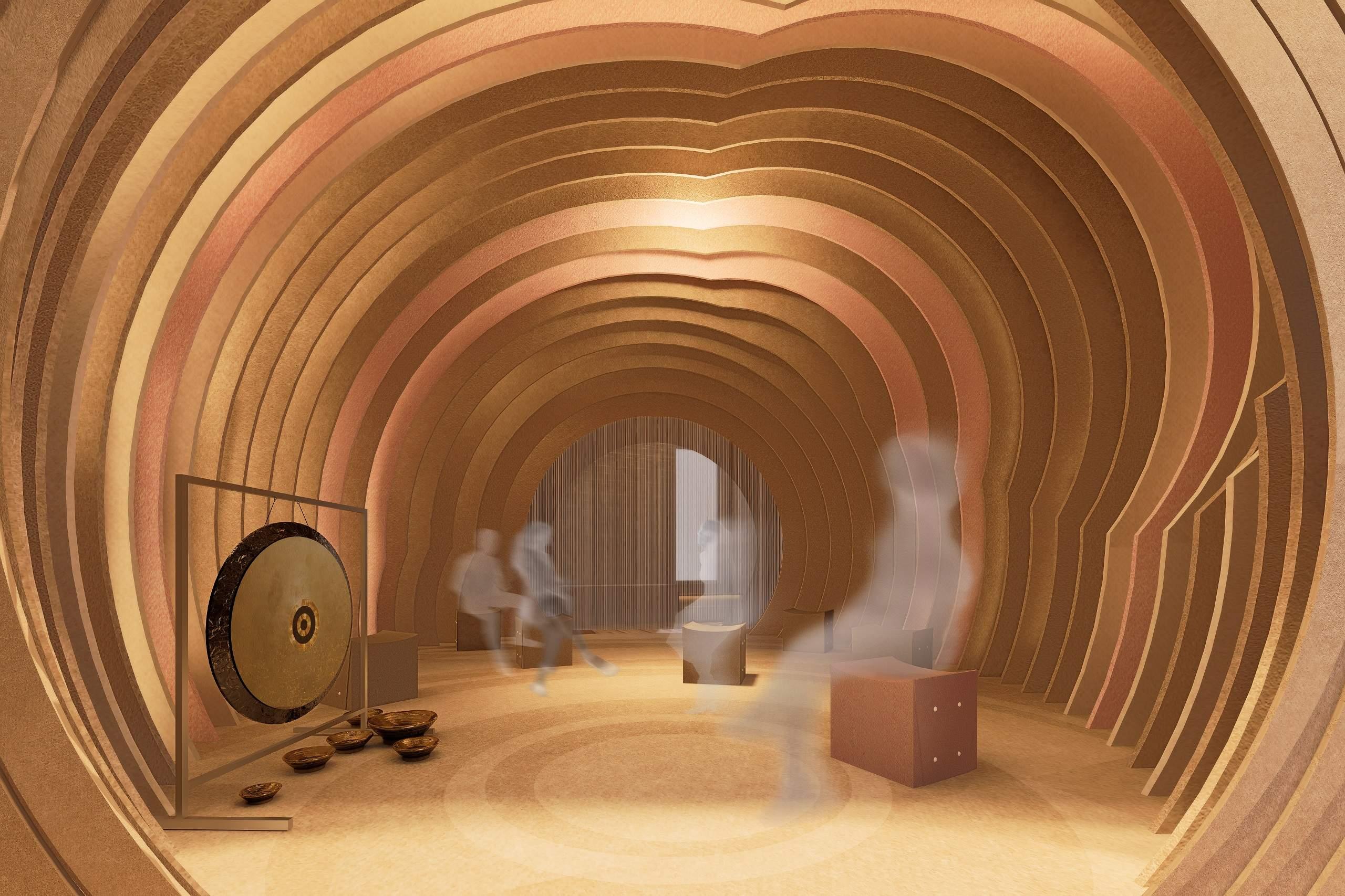 Quiet Studio oferă un spațiu imersiv de relaxare, cu panouri acustice neutre din punct de vedere al emisiilor de carbon, pentru vindecare colectivă și refacere individuală.
