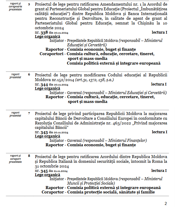 12:18 Deputații au aprobat, în lectura I, proiectul de lege pentru ratificarea Acordului dintre Republica Moldova și Republica Italiană în domeniul securității sociale, întocmit la Roma la 31 octombrie 2024.