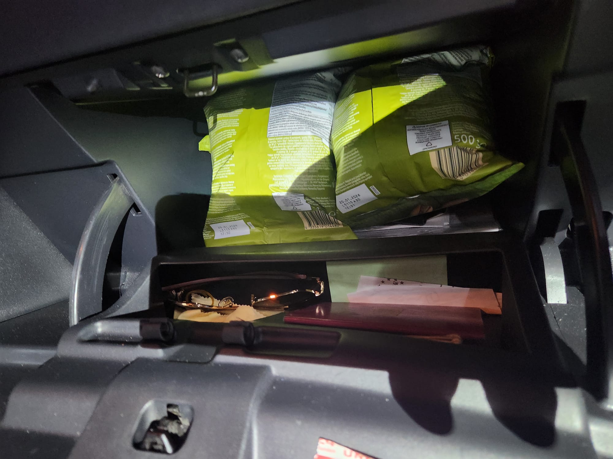 Astfel, fisticul a fost găsit ascuns în torpedou, sub scaune, în buzunarele din uși, în portbagaj, în locul destinat roții de rezervă, în nișele laterale interioare, precum și în genți aflate în portbagaj. În total, au fost depistate 200 de pachete, a câte 500 g fiecare.