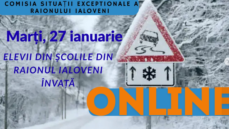 Primăria municipiului Chișinău informează că, pentru ziua de astăzi, 27 ianuarie 2026, se dispune sistarea activităților educaționale în instituțiile de învățământ primar și secundar din municipiul Chișinău, respectiv pentru clasele I–XII.