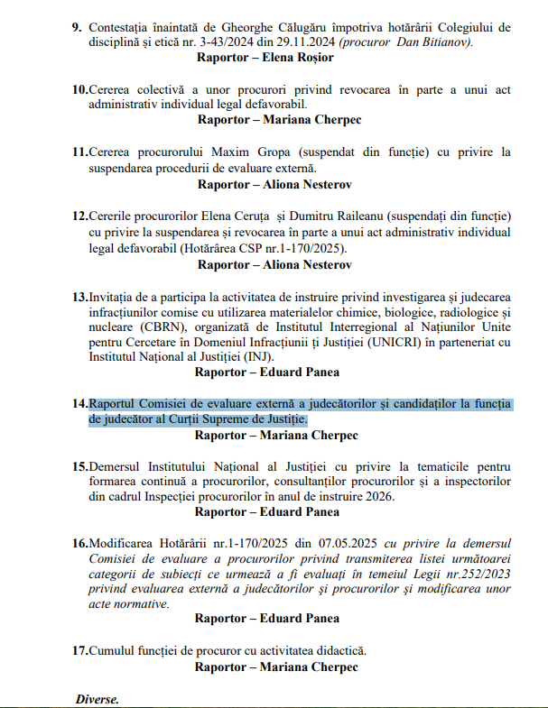 Vedeți mai jos ordinea de zi a ședinței CSP.
