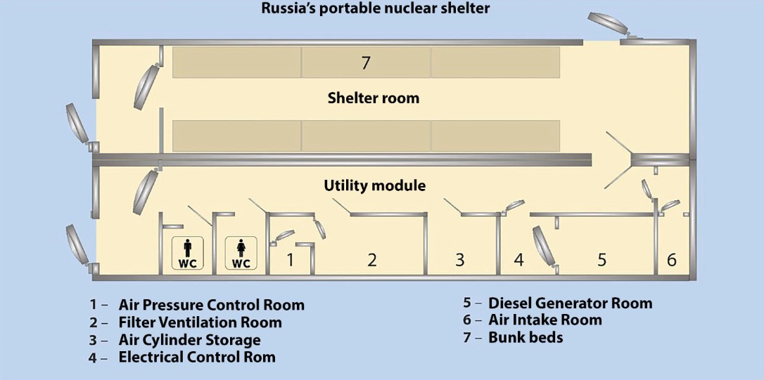 Adăposturile antiatomice mobile pot proteja împotriva unei varietăți de amenințări provocate de om și dezastre naturale, cum ar fi radiațiile, schijele, resturile și incendiile, și pot fi desfășurate în vastul permafrost nordic al Rusiei, a transmis institutul rus.
