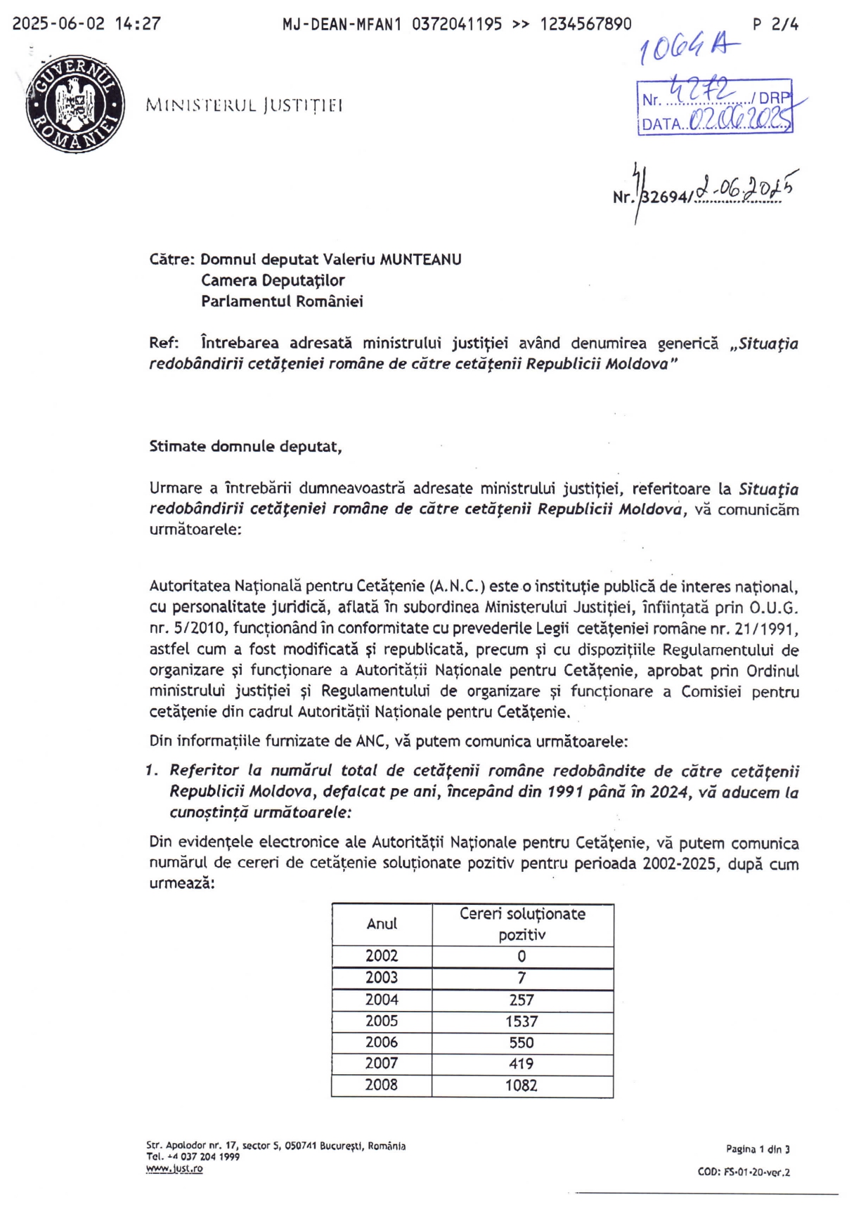 După anul 2002, procedura s-a mutat în competența Ministerului Justiției și a Autorității Naționale pentru Cetățenie: peste 770.000 de cetățeni moldoveni au fost repuși în drepturile firești de români.
