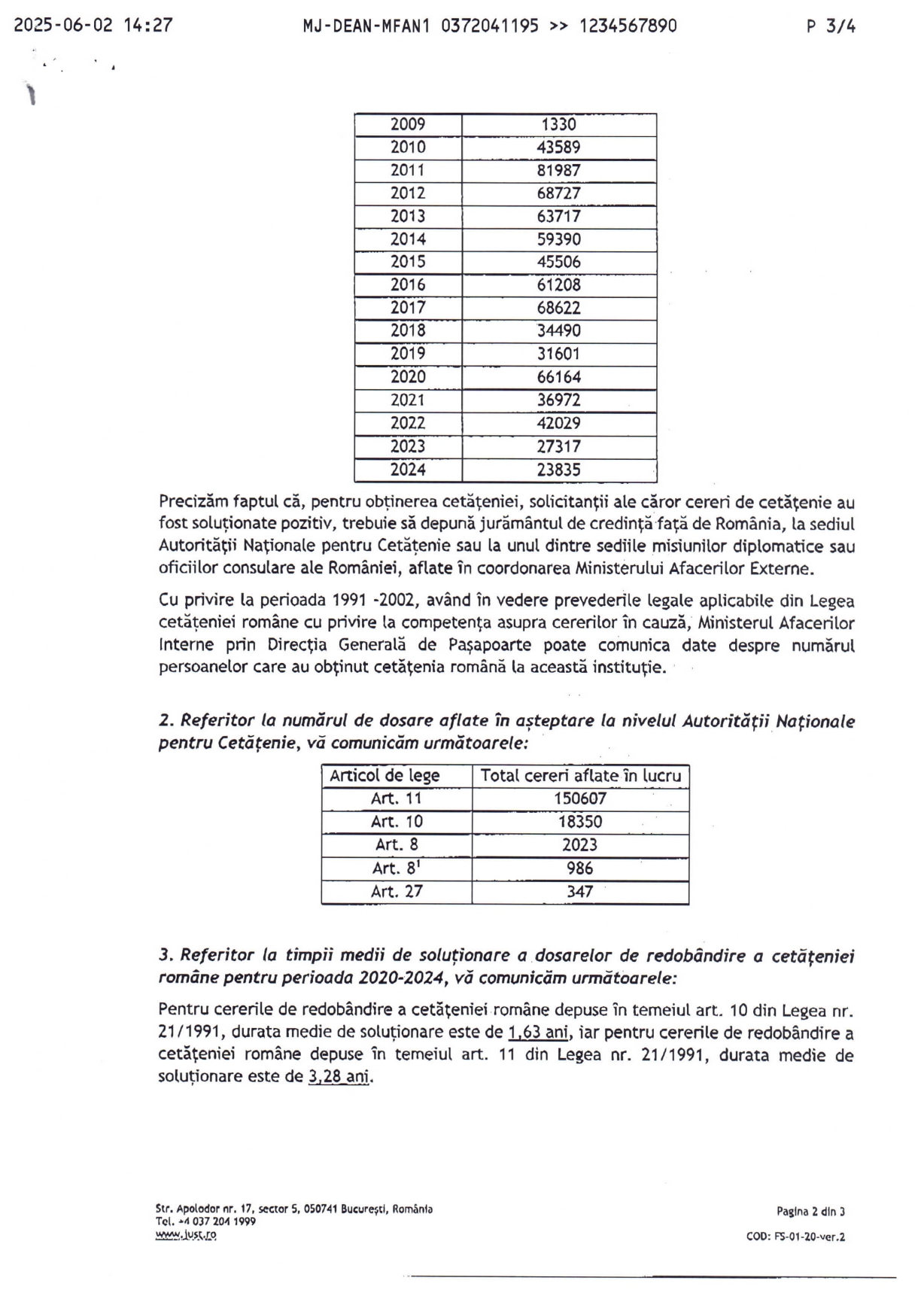 La începutul lunii iunie 2025, 150.607 dosare de redobândire a cetățeniei, depuse în baza art. 11 din Legea cetățeniei române, se aflau în lucru la Autoritate Națională pentru Cetățenie.