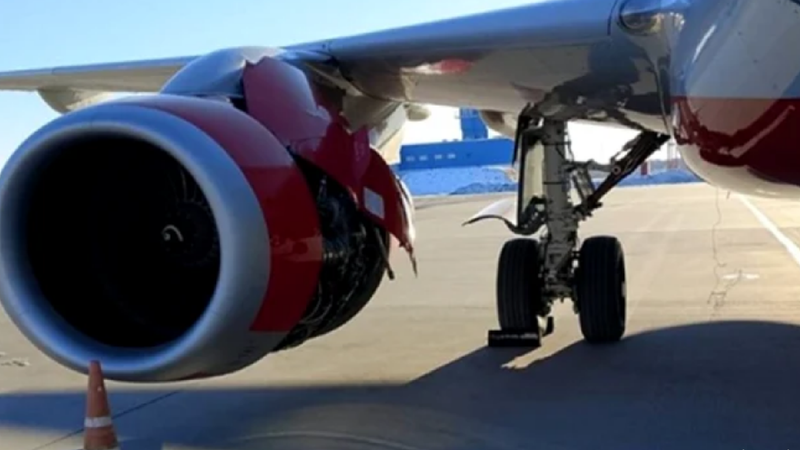 Martorii au relatat că în timpul zborului SSJ100 (Sukhoi Superjet), produs în Rusia, i s-a desprins o parte din învelișul metalic, iar motorul de pe partea dreaptă a pierdut elemente din carcasă. Avionul aparține companiei aeriene „Rossiya”.