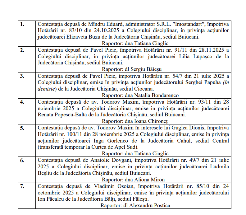 Prezenta hotărâre poate fi contestată la Curtea Supremă de Justiție în termen de 30 de zile. Copia hotărârii se remite pentru informare instanțelor judecătorești și se publică pe pagina web a Consiliului Superior al Magistraturii”, a declarat președintele CSM, Sergiu Caraman.
